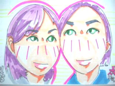 第一次對話 當時"A記"隊長要做 telephone interview,那時何小姐也來湊熱鬧一起參與,何小姐和陳先生的第一次對話是英語對話。 第一次見面 陳先生去"A記" interview,臨走前在走廊遇上剛去完洗手間的何小姐,他們迎面而過。如果沒有記錯的話,好像有互說聲"hi" 或"bye"之類。 第一次當同事 一開始大家是同事,都沒有什麼"感覺"。陳先生和何小姐有時會被編在一組拍通宵更,可能就是從那時開始有點熟絡吧! 第一次去旅行 "A記"舉辦慶功旅行二日一夜澳門遊,何小姐和陳先生也有份參加。當時,他們已經是比較熟和談得來的同事了。或者是因為有名的"威斯汀"酒店,又或者是沙灘上黑沙,又或者是澳門美食 的關係..感情更進一步了! 當兩條直線在一點相遇 陳先生和何小姐是折然不同的人。陳先生在香港長大和讀書,為人樂觀但卻說話不多,最怕麻煩,做事慢條斯理。而何小姐在國外長大和讀書,為人悲觀,雖然說話不太多,但一說話就是找麻煩的,想做的事便要立刻做 。兩個不同性格的人走在一起當然會 擦出火花,不過都只是小火花!你可以想像,當一個人不停的吵鬧,另一個人卻像木頭一樣沒有反應時,吵的人也沒有興致再吵了! 當一點變成一對 他們最相襯的地方應該是大家都很慳儉吧!由一開始大家有個目標要組織一個小家庭起,陳先生和何小姐也很努力的儲錢。旁人也許不明白,那麼辛苦為什麼?不過他們是很享受這個過程,回顧過往的"業績",還有一種成功感哩!婚後,他們還會繼續努力,為未來作更好的準備! P.S. : 圖片是在東京吉祥寺JR(馬尺)外一個擺地攤的青年所繪